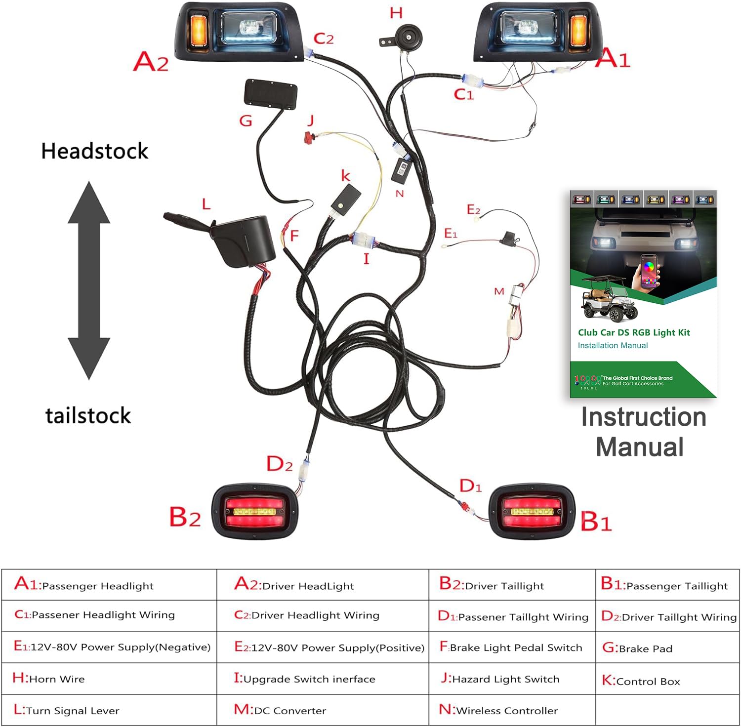 - Make golf cart street legal: Come with golf cart turn signal kit, added brake light, hazard flasher, horn, front rear turn signal function to a factory golf cart