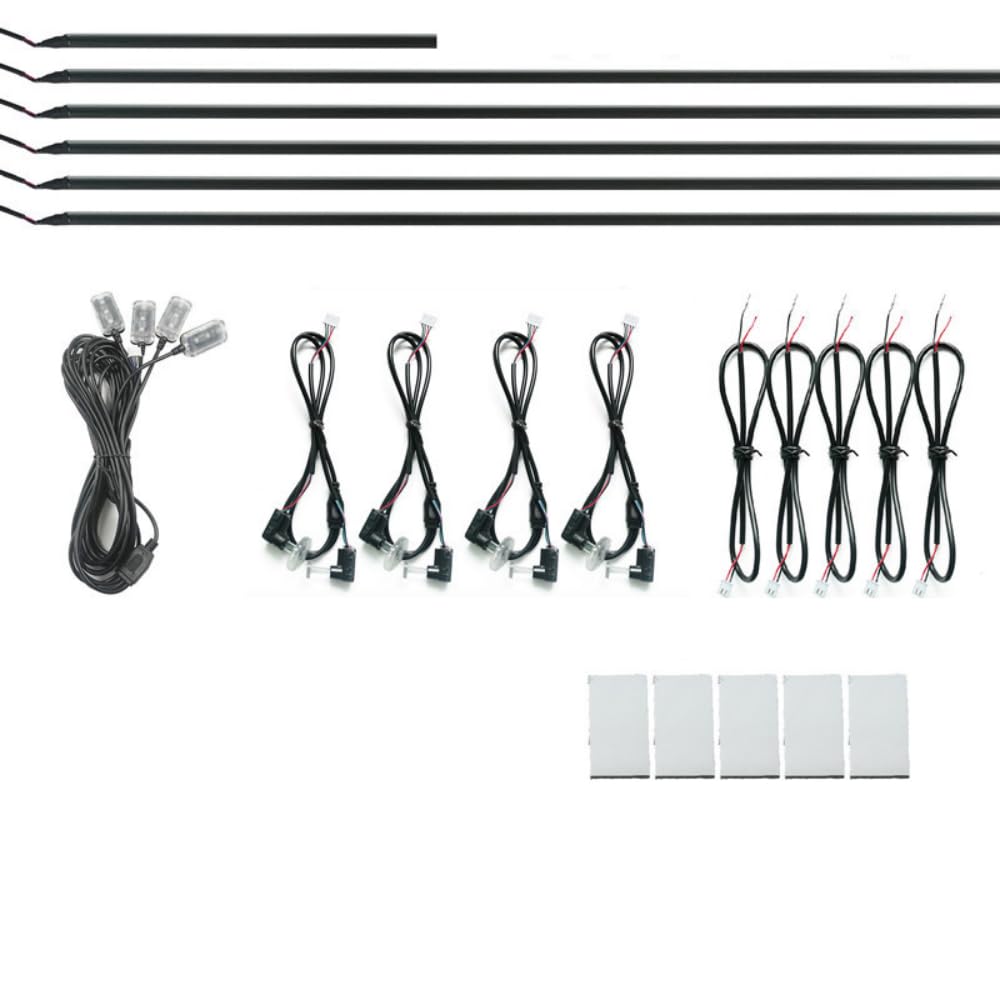 - COMPLETE KIT: 18-piece car interior lighting set includes RGB LED strips, optical fiber components, wiring harnesses, and installation accessories