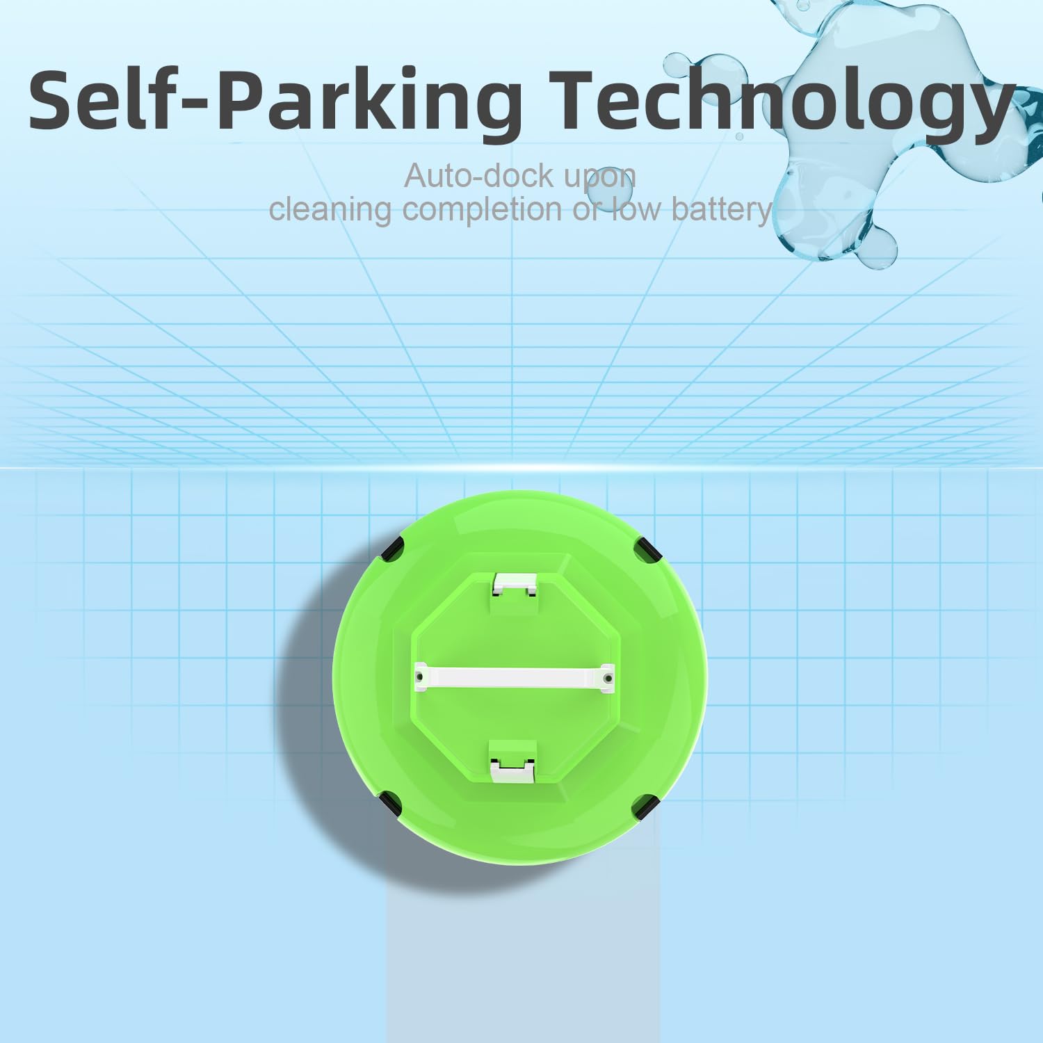 - 【Self-Parking Technology】Equipped with advanced navigation modules, this above ground pool vacuum automatically parks near the pool wall upon cleaning completion or low battery, eliminating the need for manual intervention. Also, attached hook for easy retrieval of the pool robot.