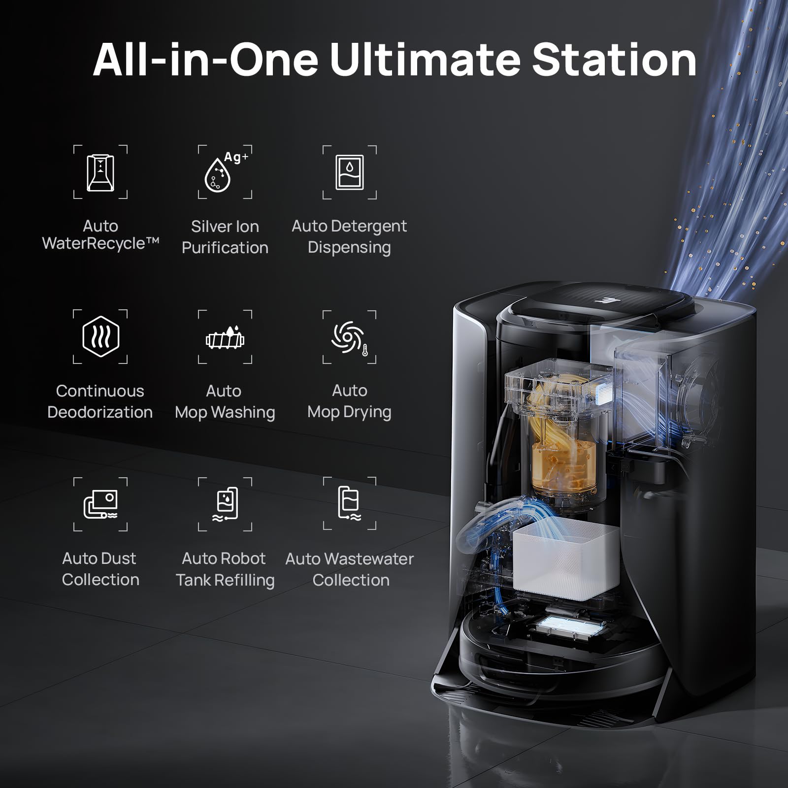 - Truly Hands-Free: Automatically adds herbal cleaning solution, 3i S10 Ultra can Self-Cleaning and Self-Drying roller mop, wastewater will be distilled into the garbage and enter the dust bag, and self-refilling with purified water after the water cycle, the 12-in-1 dock station of robot vacuum can Self-Emptying with a 2.5-L capacity ensures 60 days-free