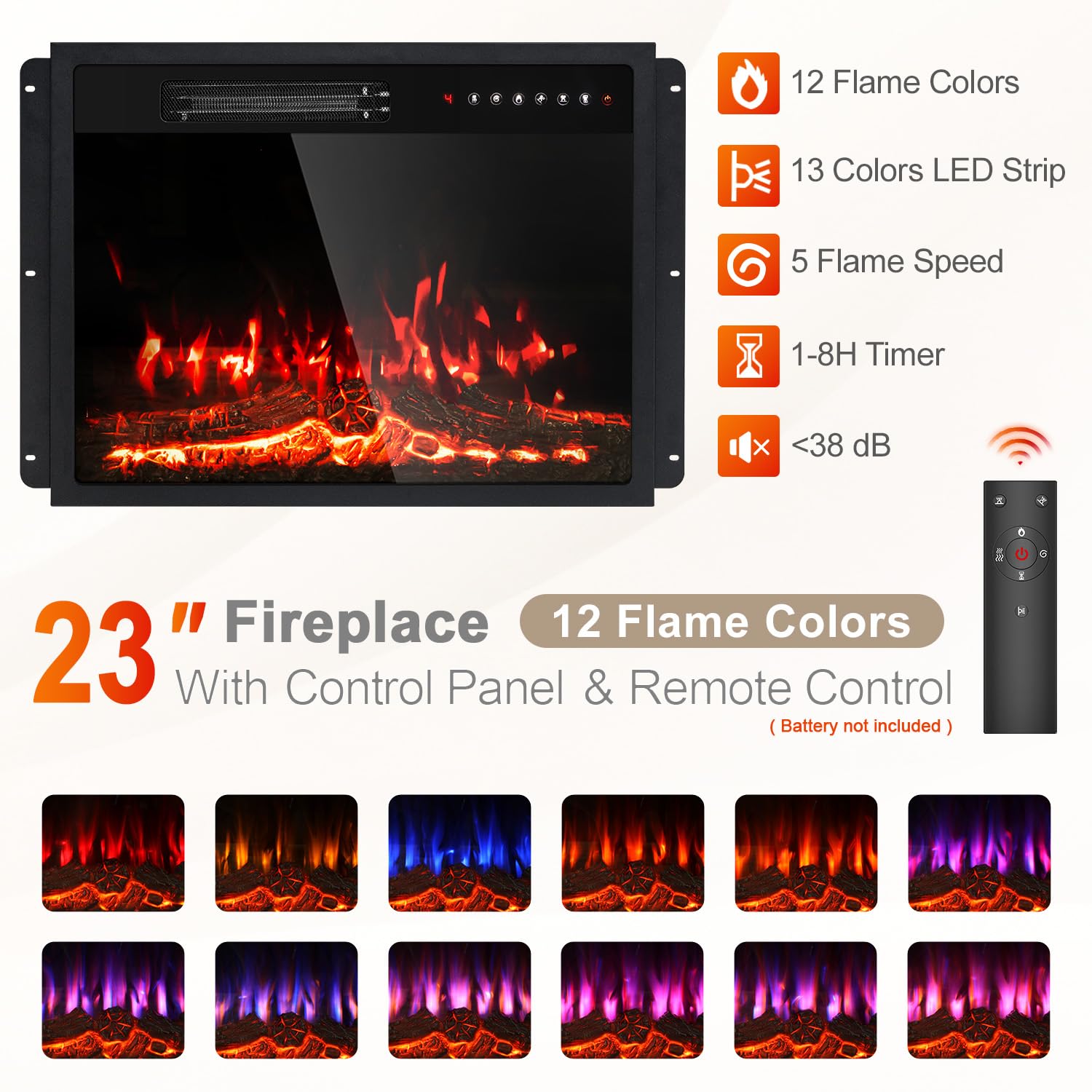 - Customizable Ambiance with LED Colors: Choose from 13 LED light strip colors, 12 flame colors, and 4 flame bed colors. This electric fireplace with mantel offers fully adjustable flame effects, creating the perfect atmosphere for your living room, bedroom, or corner space.