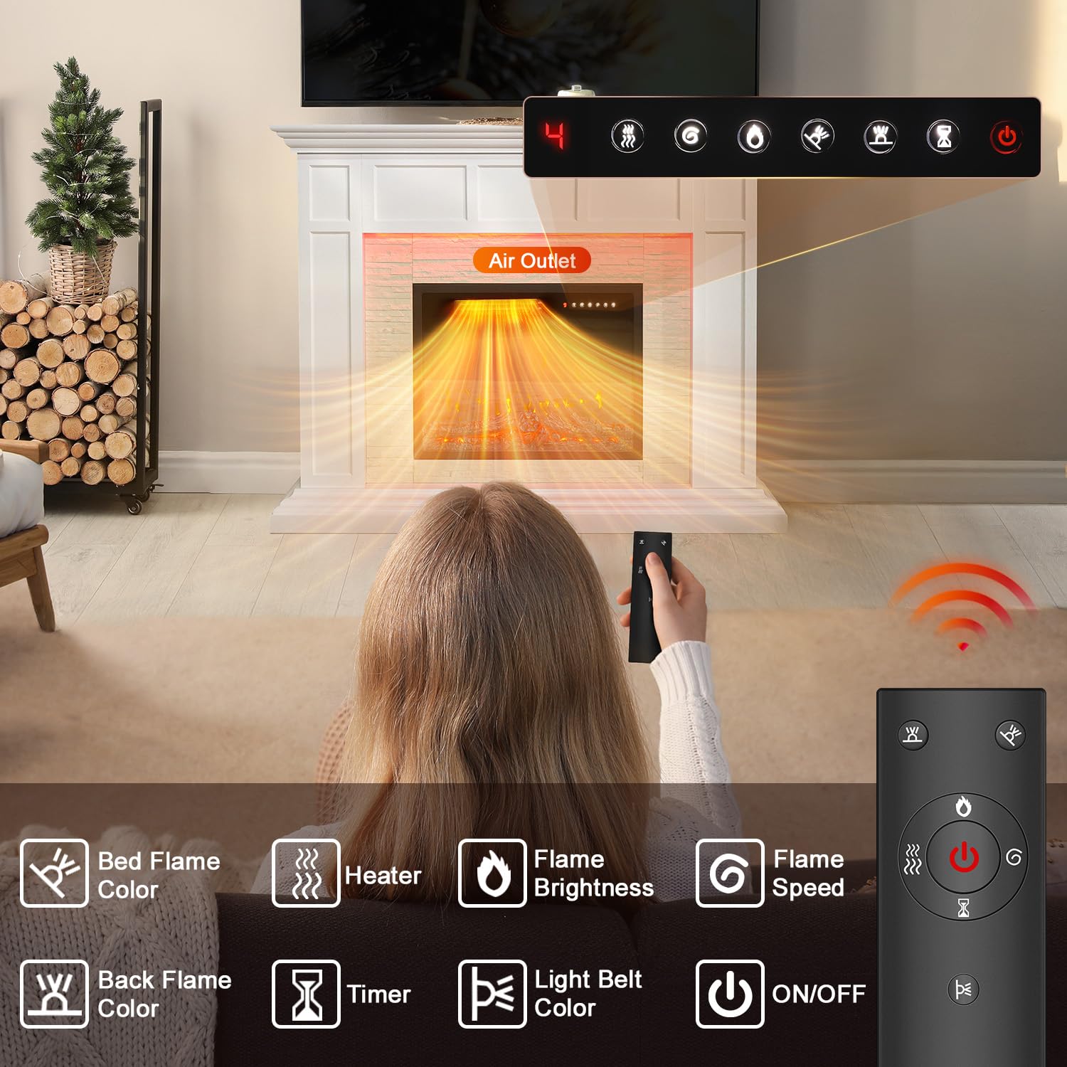 - Energy-Efficient & Easy to Use: With 5 brightness settings and a convenient 8-hour timer, this electric fireplace mantel lets you set the brightness need and temperature. It’s a great way to enjoy a warm, inviting atmosphere without the hassle of traditional fireplaces.