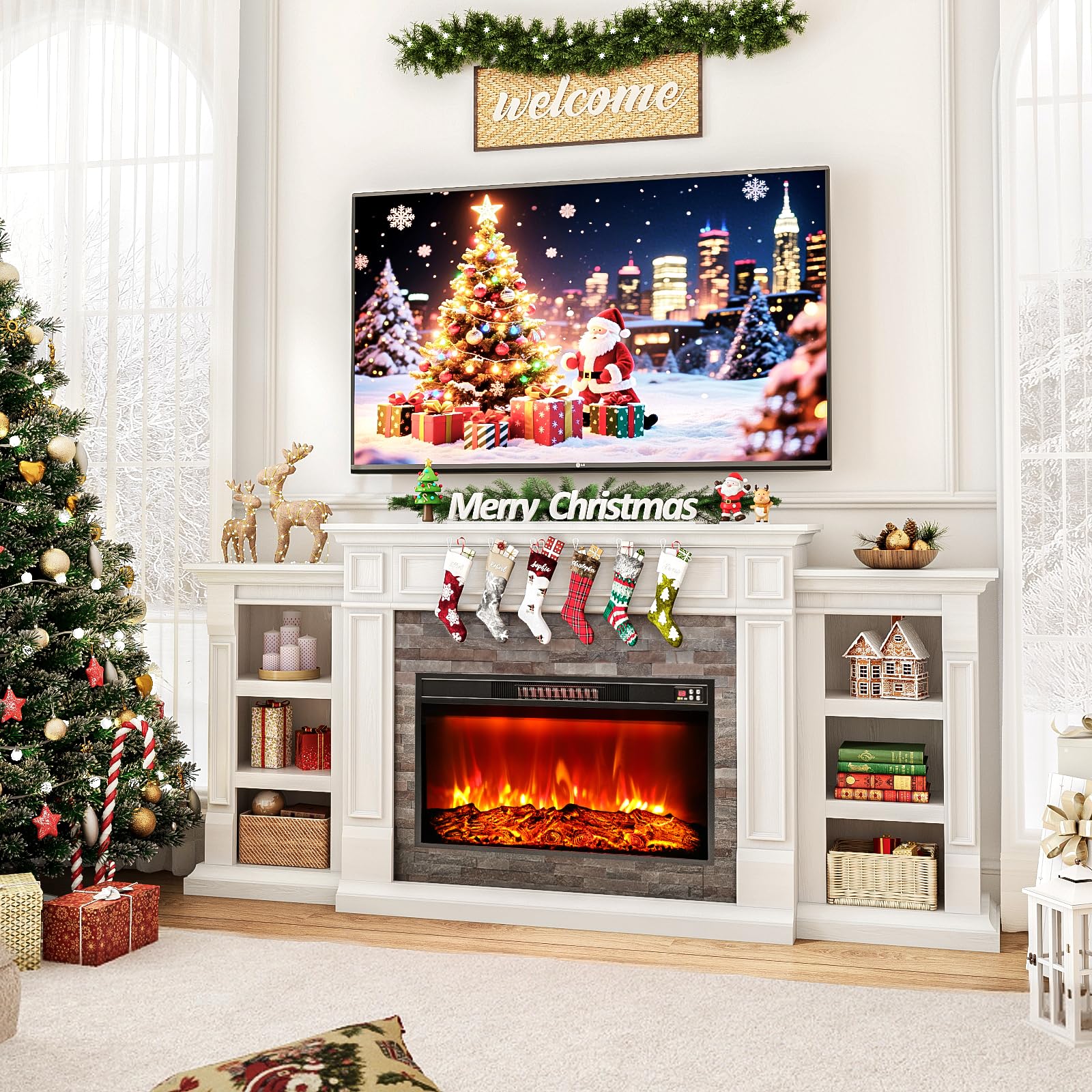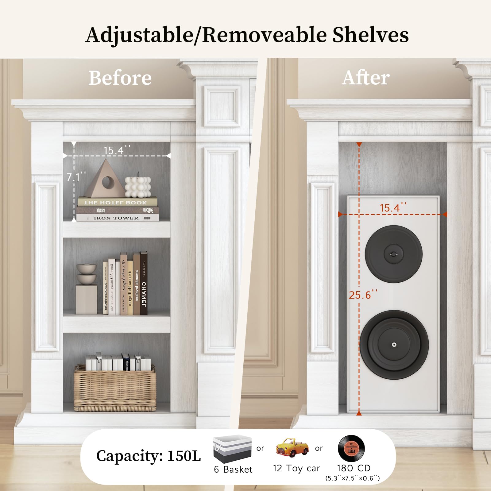 - 【 Ample Storage Space】On either side of the electric fireplace, there are three open shelves for storing CDs, remote controls, and other media or gaming devices. It's a great way to display your favorite decorations.