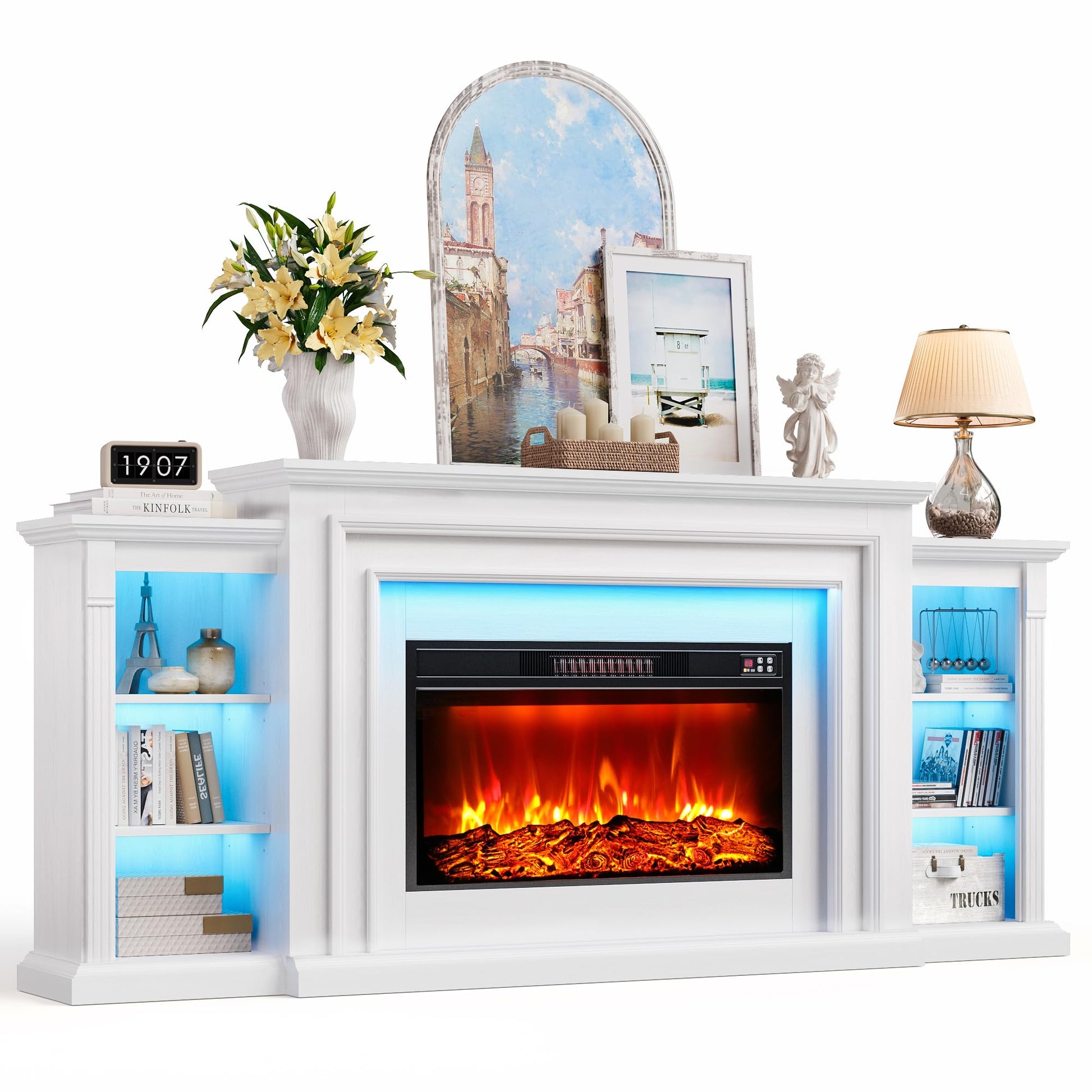 - 【Ample Storage with Open Shelves】This fireplace media console is designed with six open shelves to store cable boxes, gaming consoles, DVDs, books, and home décor. The spacious entertainment center keeps your living room, bedroom, or home theater clutter-free while providing easy access to your favorite media and accessories.