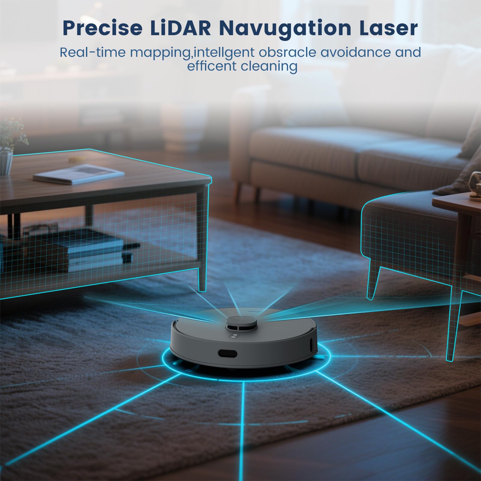 - PRECISION HOME MAPPING & Smart APP Control: LDS laser navigation ensures precise mapping and efficient cleaning paths. Control your home robot via the Smart APP, set schedules, create no-go zones, and save multi-floor maps for seamless cleaning. With just one click of a button, the robot can automatically plan the cleaning route.