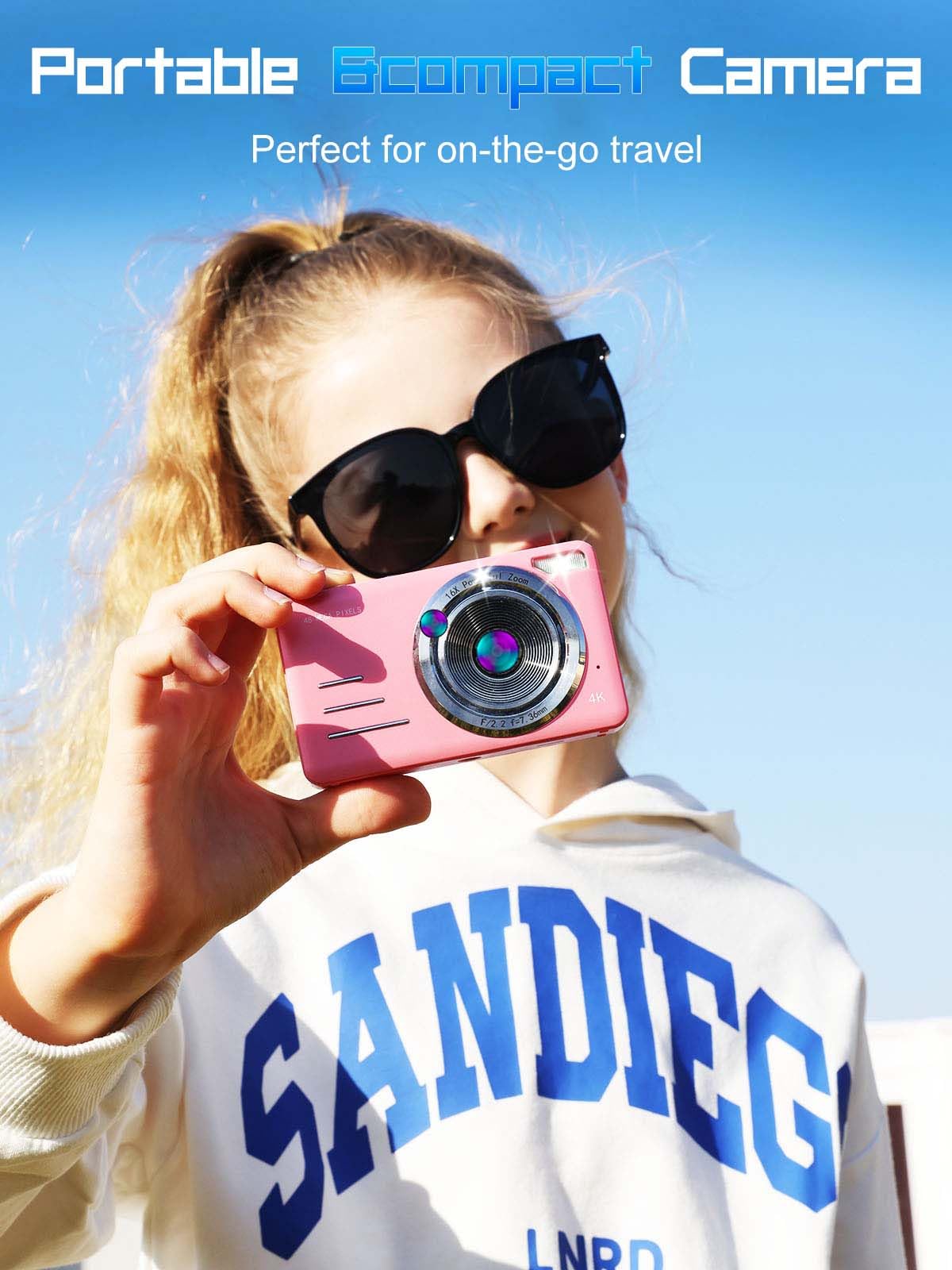 - [Capture Every Detail in 4K]This compact digital camera delivers 4K video and stunning 64MP photos—perfect for capturing life’s best moments in crisp, vivid quality. Whether you're filming your pet or your trip, it never misses the details.