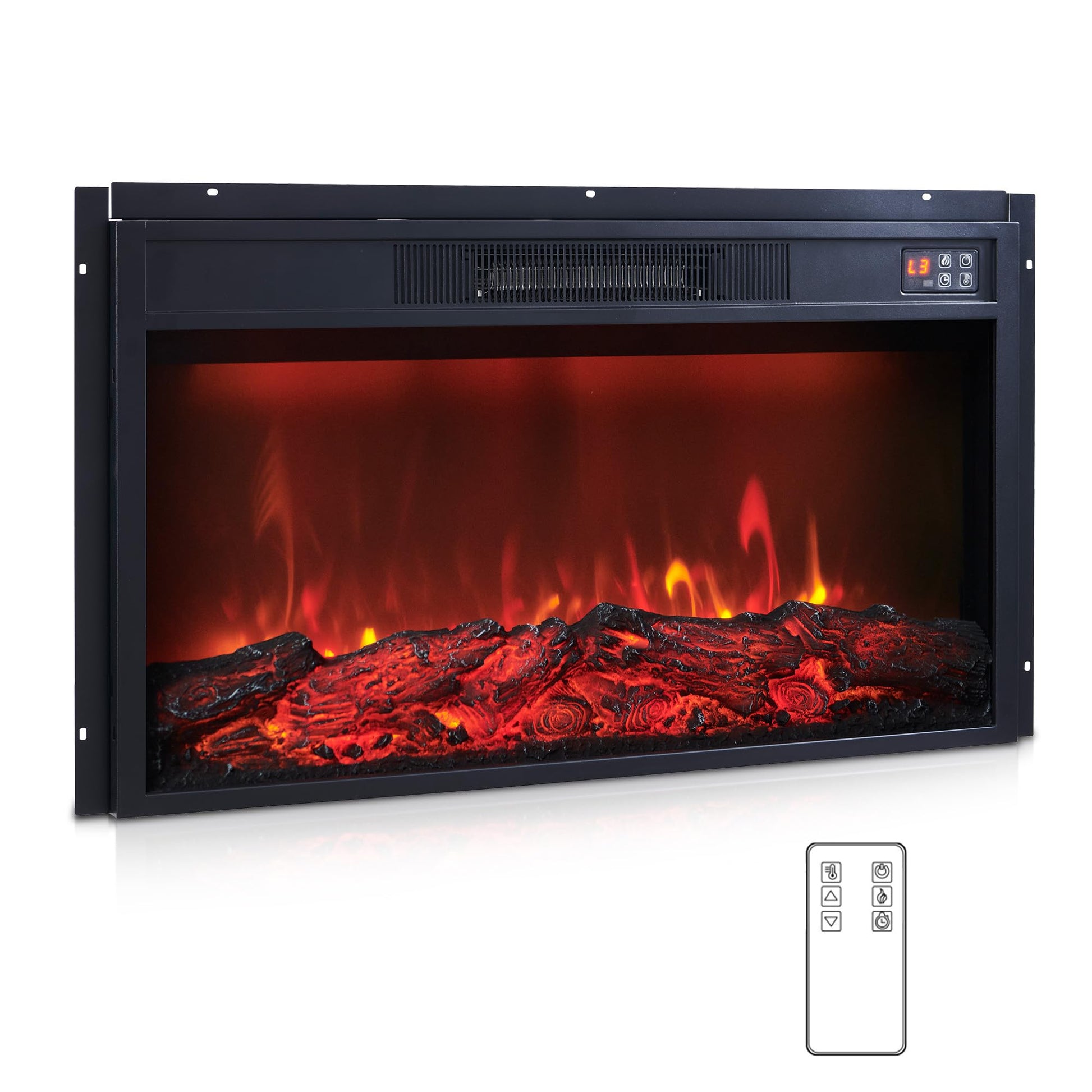 Aitjunz 30" Electric Fireplace Insert, Fireplace Heater with Remote, 3 Flame Control, Heater Control, Low Noise, 6 Hour Timer, Overheating Protection, 1400W, Touch Screen (Black)
