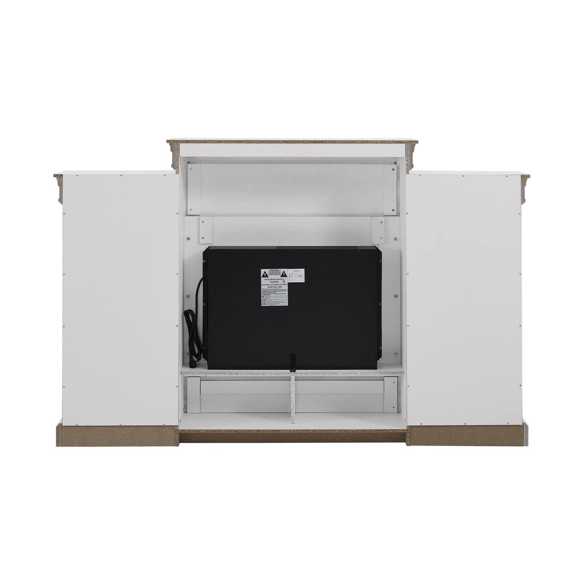 Ameriwood Home Lamont 69 Inch Electric Fireplace with Mantel, Shelves, Replaceable Fireplace Insert Heater, Remote Control, Timer, Realistic Log and Flame Effect, For Living Room or Bedroom, White
