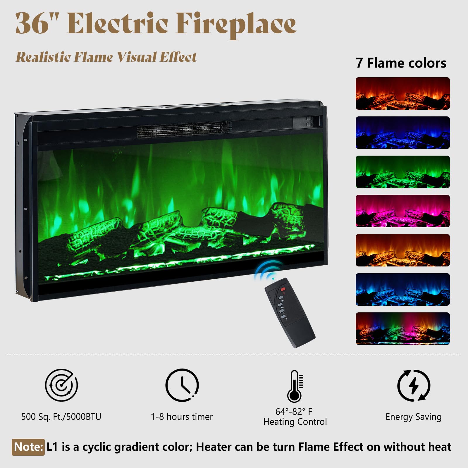 - [7-Color Electric Fireplace] The built-in 36-inch fireplace features 7 flame color modes to create a cozy ambiance. The flame effect can be used with or without heat, 1H-8H timer settings for safety and energy efficiency.