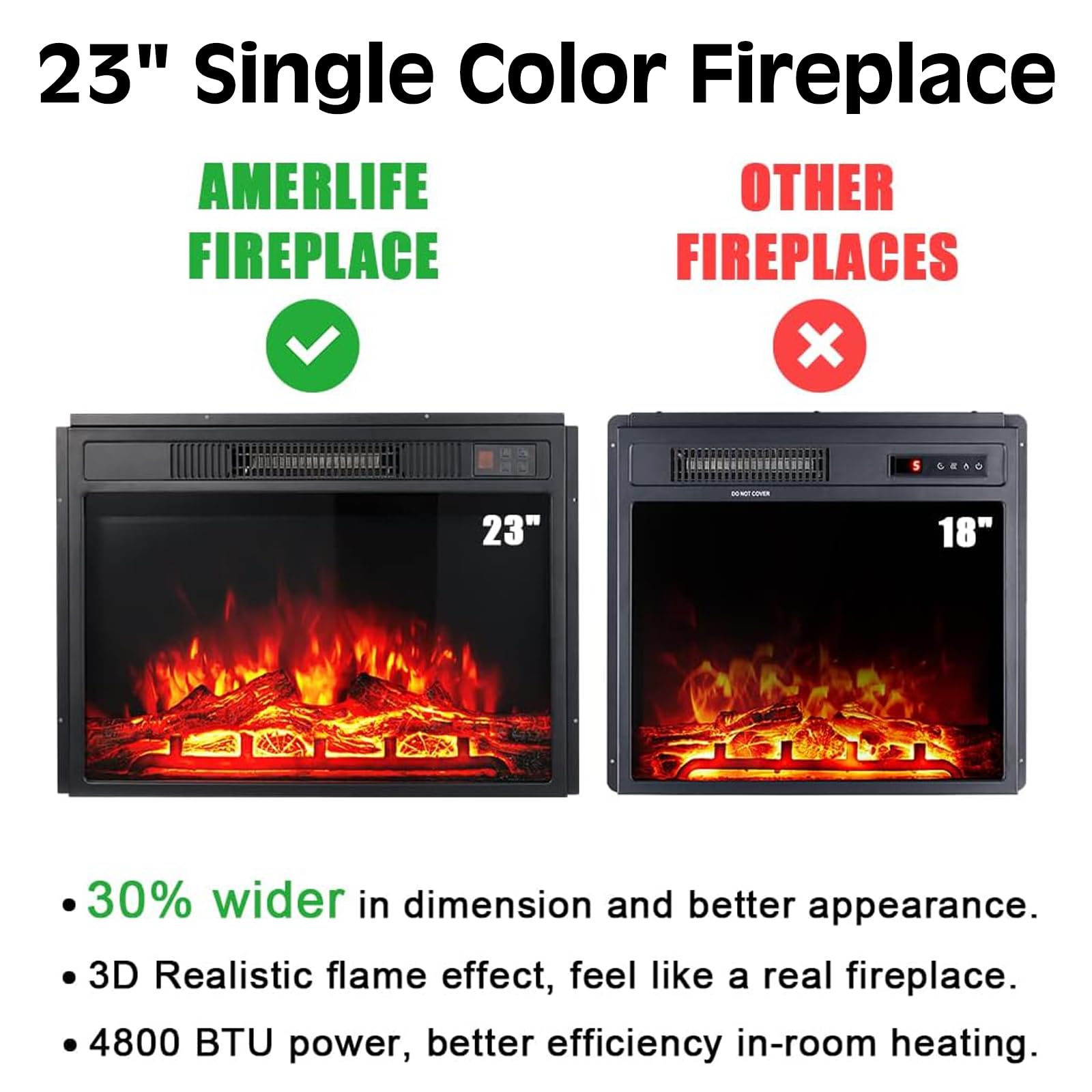 - 【Electric Fireplace】 An updated 23' plug-in electrical fireplace was included. Compared with the 18'' electric fireplace, the updated 23' electrical fireplace has a new appearance, wider dimension, and high efficiency to make the room warm faster.