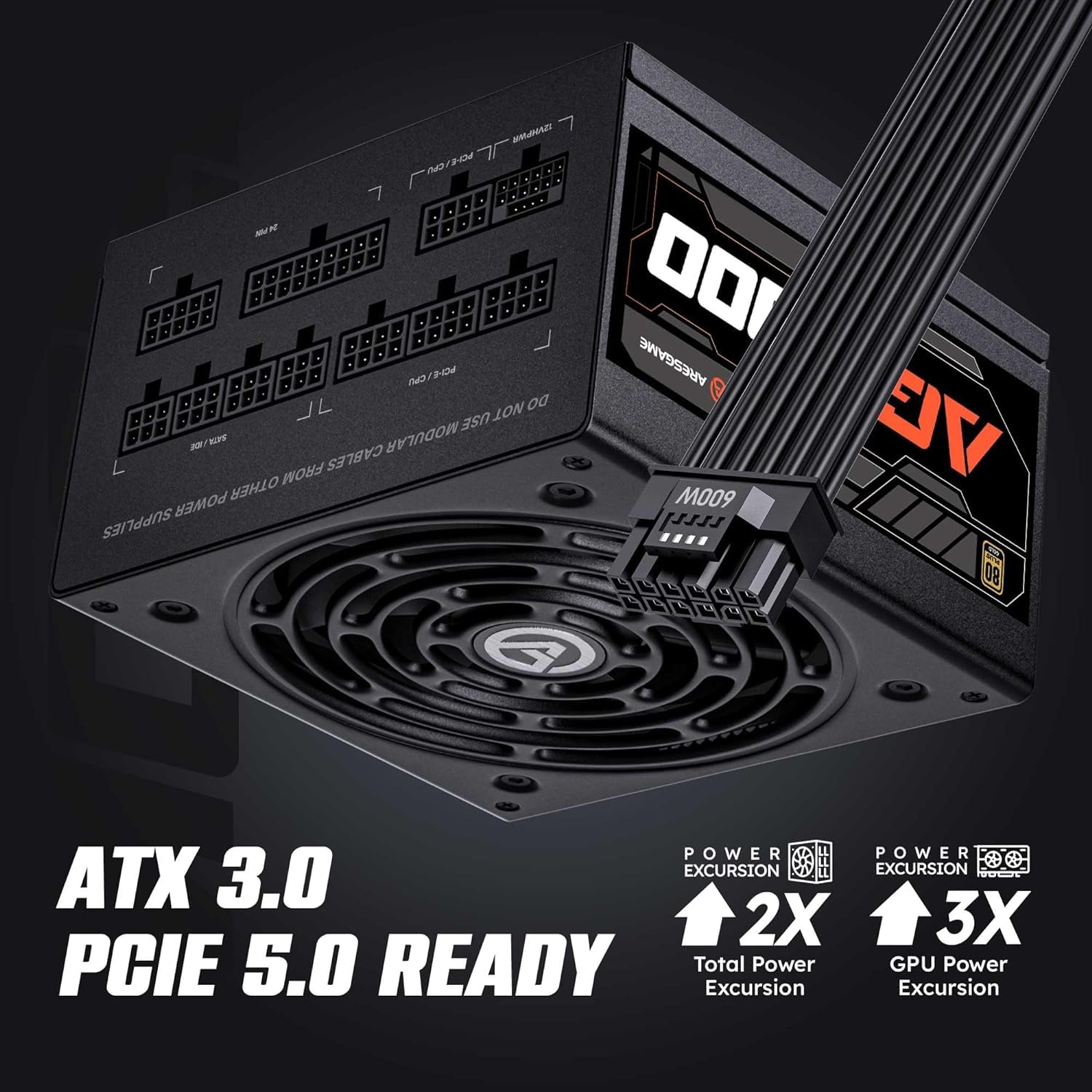 ARESGAME AGT Series 1000W Power Supply, 80+ Gold Certified, Fully Modular, FDB Fan, Compact 140mm Size, 10 Year Warranty, ATX Gaming Power Supply