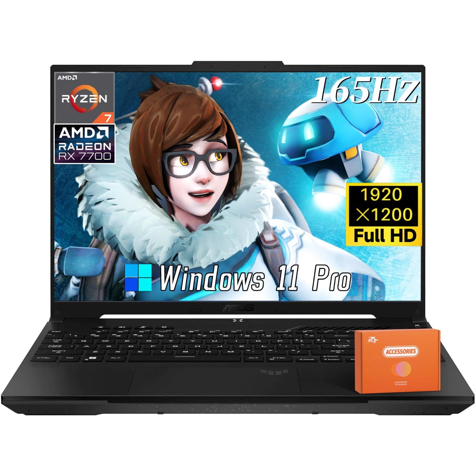ASUS TUF A16 Gaming Laptop, 16" FHD 165 Hz 250 Nits Display, AMD Ryzen 7 7735 HS, 32 GB DDR5 RAM, 2 TB SSD, Radeon RX 7700S, Wi-Fi 6, RGB Backlit KB, 720p HD Camera, Windows 11 Pro, w/Accessories