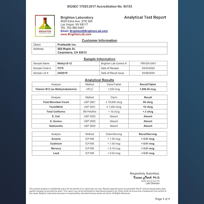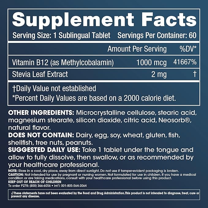 ProHealth Methyl B-12 Methylcobalamin (1000 mcg, 60 sublingual Tablets) (Vitamin B-12)