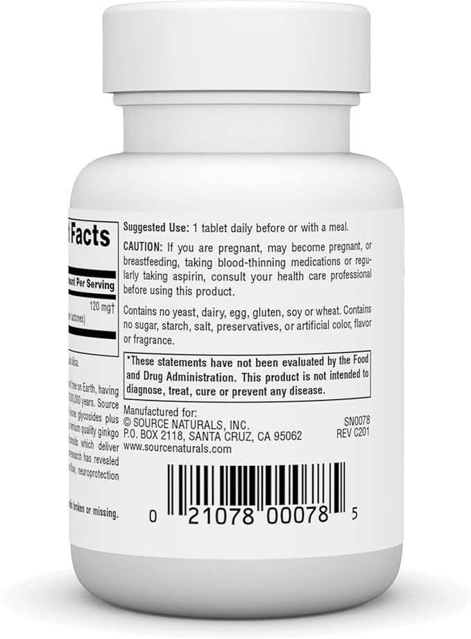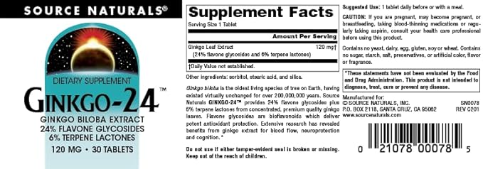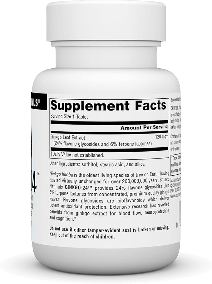 Source Naturals Ginkgo-24 - Ginkgo Biloba Extract 120 mg Supports Mental Acuity - 30 Tablets