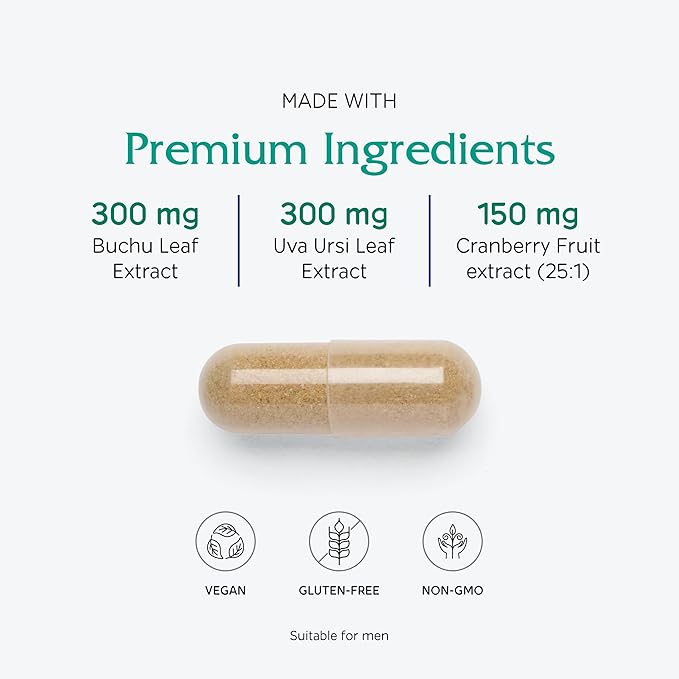 - Buchu leaf offers diuretic and tonic support; while Oregon grape root promotes immune health for these delicate tissues