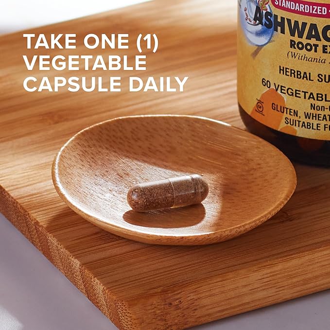 - Gluten, Wheat & Dairy Free; Solgar Ashwagandha Root Extract is non-GMO, vegan, kosher, and free of: gluten, wheat, dairy, soy, yeast, sugar, sodium, artificial flavor, sweetener, preservatives and color