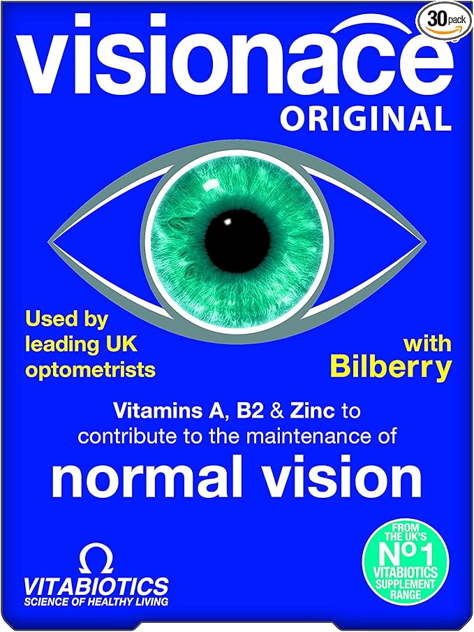 - NUTRITIONAL CARE FOR NORMAL VISION: Visionace is a research based formula that has been developed with Vitabiotics' experts. Visionace Original contains 23 micronutrients including vitamins A, B2 and zinc which contribute to the maintenance of normal vision, plus Bilberry extract and Lutein Esters.