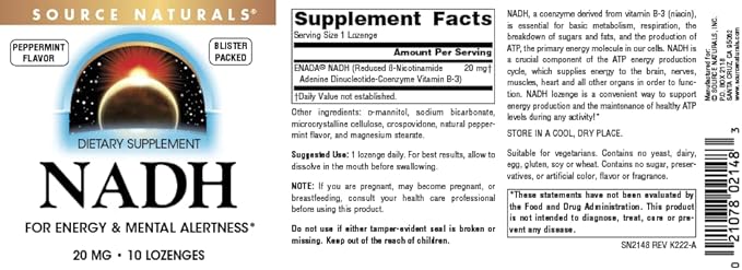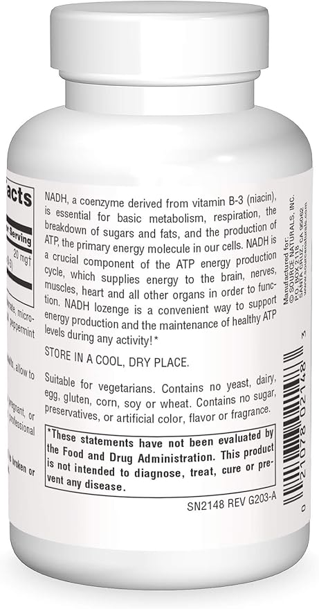 Source Naturals NADH 20mg, Boost Energy and Mental Alertness*, 10 Lozenges