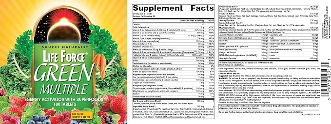 Source Naturals Life Force Green Multiple, Energy Activator with Superfoods* -180 Tablets