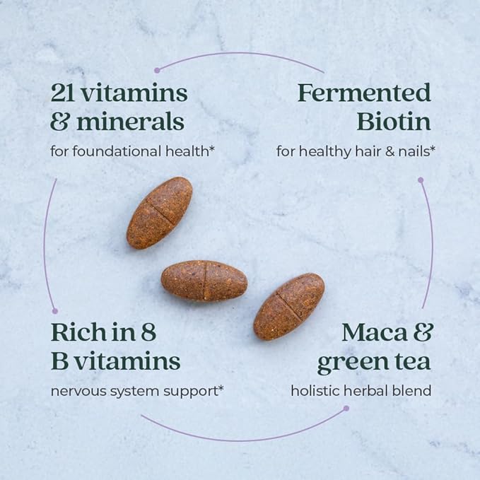 - STRESS SUPPORT WITH HERBS: avoid the crash of stimulants with the perfect multivitamin for a healthy stress response* with complementary organic Maca & American Ginseng