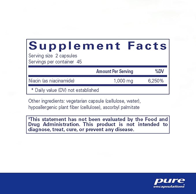 Pure Encapsulations Niacinamide | Vitamin B3 Supplement to Support Energy Metabolism, Joint Mobility, and Metabolic Function* | 90 Capsules