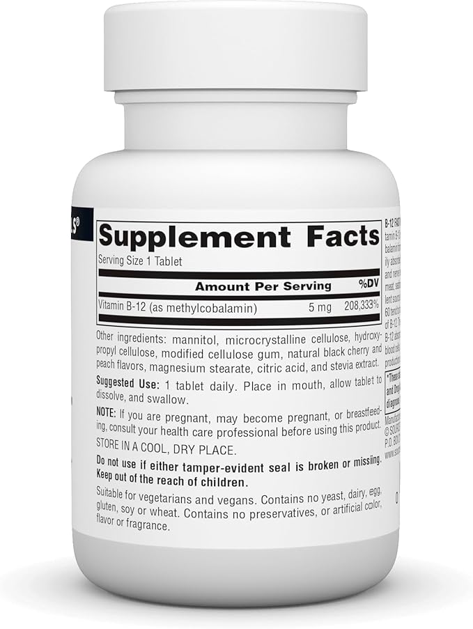 Source Naturals Vitamin B-12 Supports Energy Production* - 5 mg - 60 Fast Melt Vegan Formula