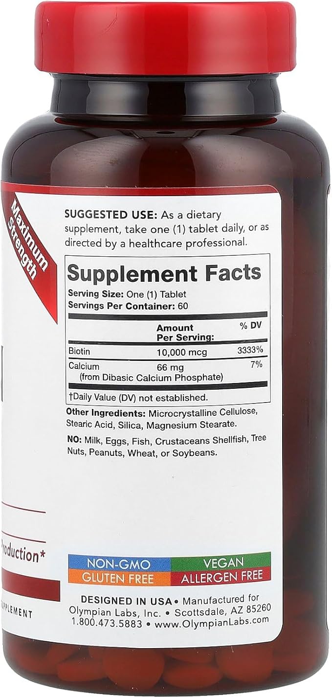 - Olympian Labs Biotin 10,000mcg per serving Supporting Cellular Energy Production