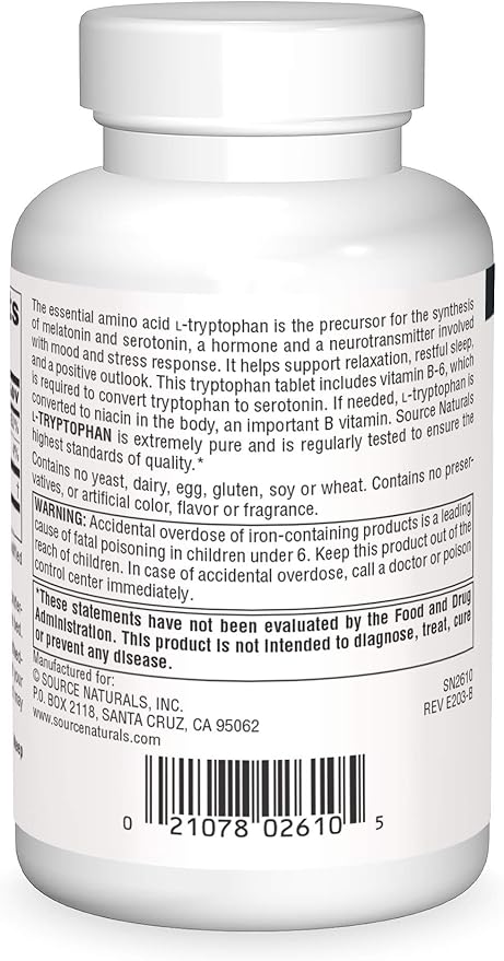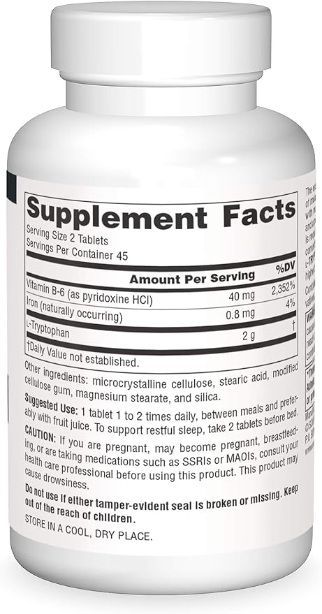 Source Naturals L-Tryptophan with Vitamin B-6 1000 mg Support Mood, Relaxation And Sleep - 90 Tablets