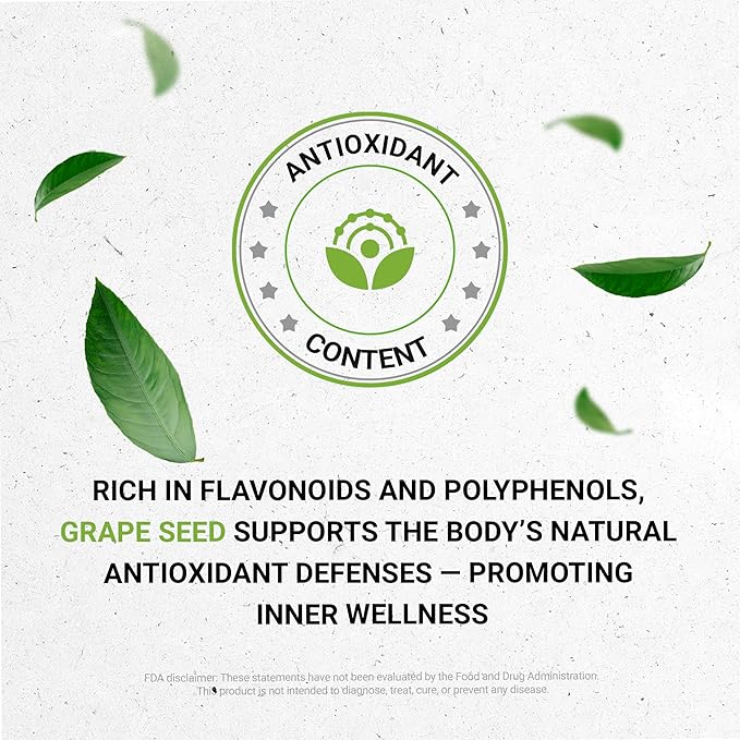 - Rich in Powerful Antioxidants – Grape Seeds (Vitis vinifera) are naturally abundant in flavonoids, polyphenols, procyanidins, and anthocyanins, which contribute to their long-standing use in traditional wellness practices.