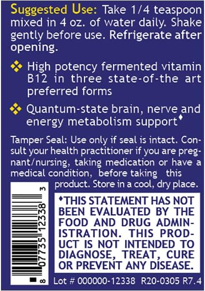 - RECOMMENDED DAILY USE: For daily energy, brain & heart health support, take 1/4 teaspoon of our Vitamin B12 tincture mixed in 4 oz of water daily. Shake gently before use & refrigerate after opening