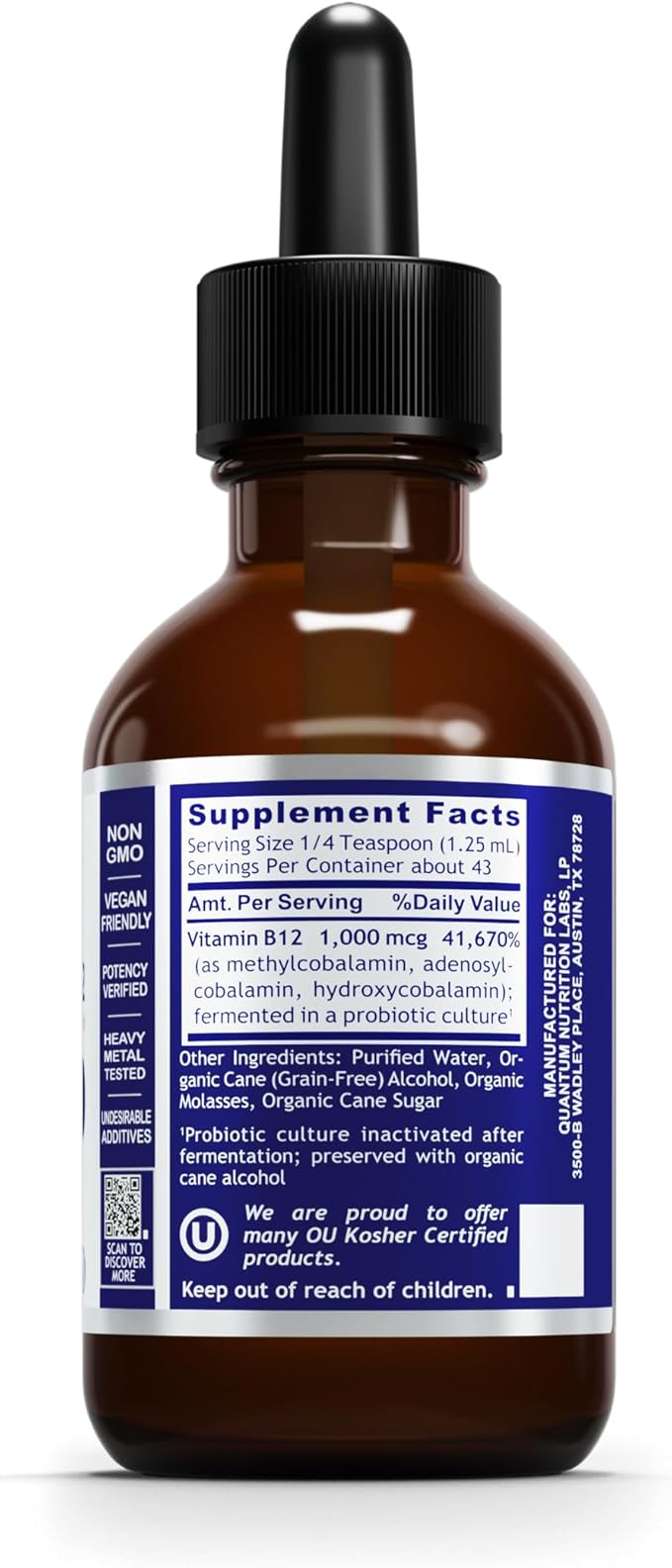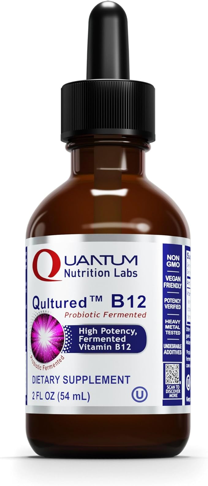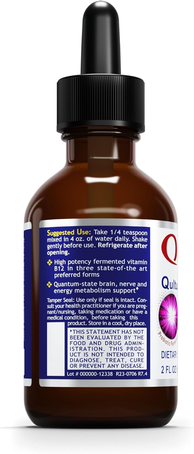 Quantum Nutrition Labs Qultured B12 - Vitamin B12, Pure B12 Liquid, B12 Sublingual, Methylated B12, Organic, Liquid Drops for Adults, Liquid B12 Supplement with Methylcobalamin - 2 Fl Oz