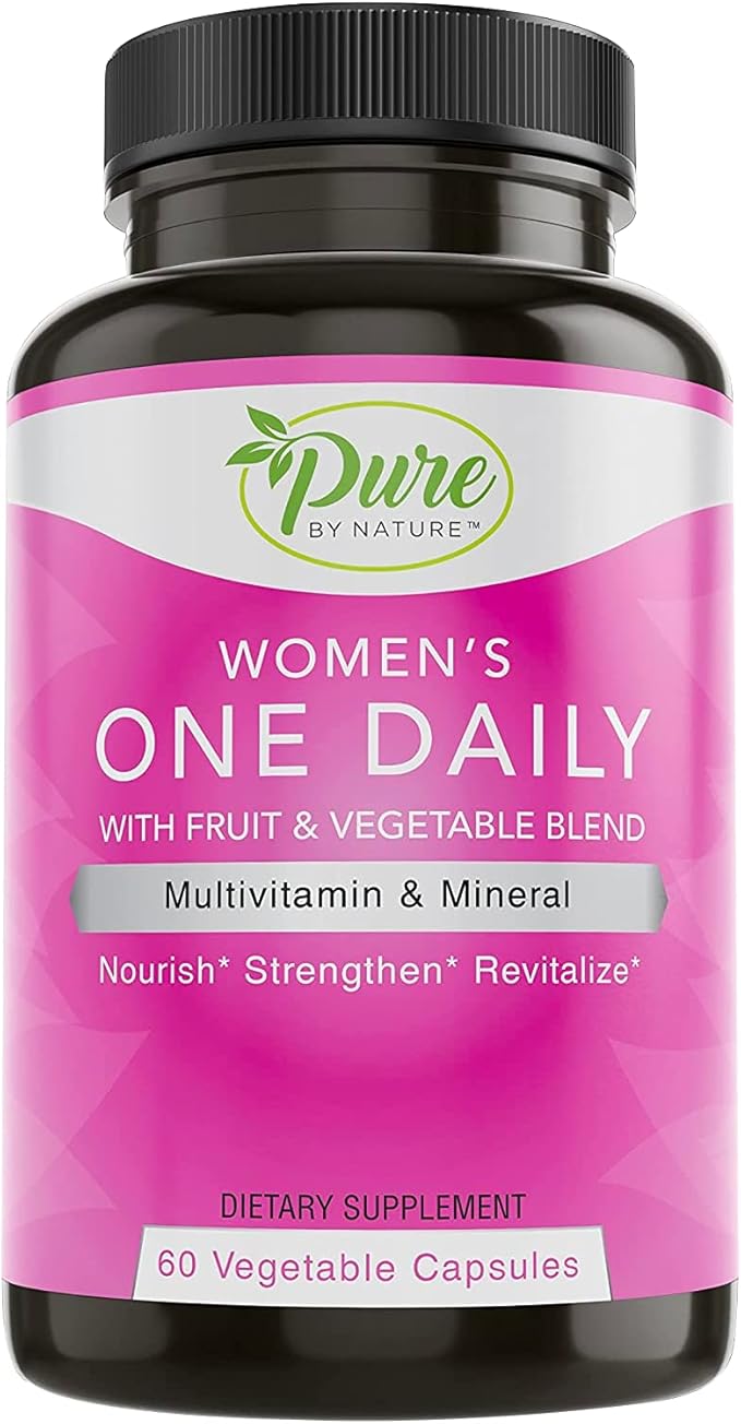 Pure By Nature One-Daily Multivitamin for Women, Immune Support Supplement with Non-GMO Ingredient, Vitamin & Minerals for Energy, 60 Veggie Capsules