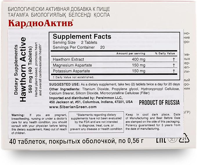 Hawthorn by Evalar Cardio 40 Tabs