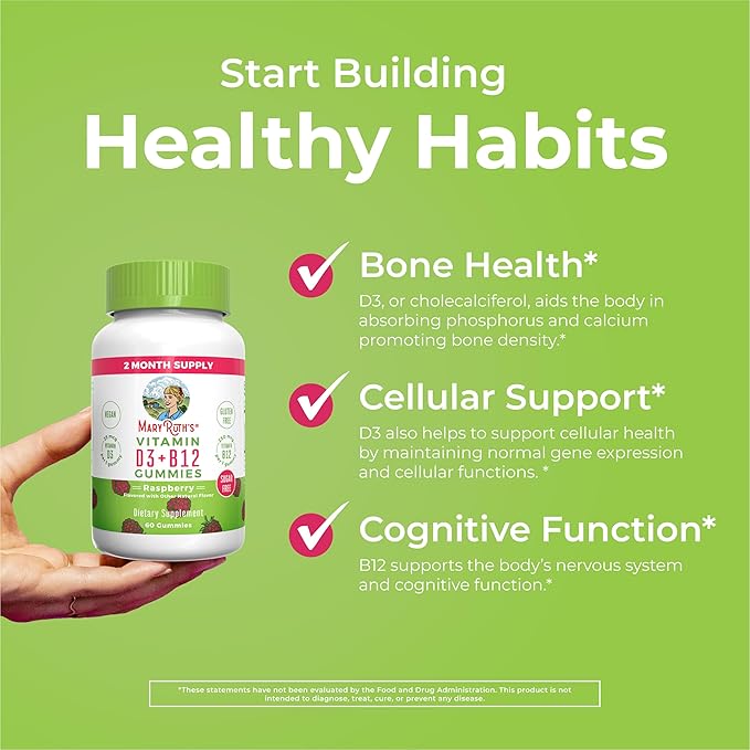 MaryRuth Organics Sugar Free | 2 Month Supply | Vitamin D & B12 Vitamin Supplements for Adults & Kids | Bone Health | Immune Support | Vegan | Non-GMO | 60 Servings