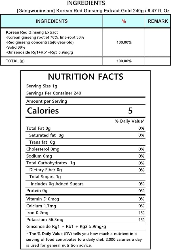 - NO ADDITIVES, KOREAN RED GINSENG CONCENTRATE 100% - Gangwoninsam Red ginseng concentrate is a pure concentrate obtained by extracting only 6 years old red ginseng produced by 100% contract cultivation.