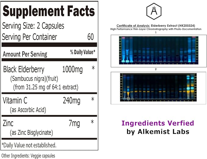 - 2 Month Supply: Made with natural Sambucus black elderberry, vitamin C, zinc. 120 capsules per bottle