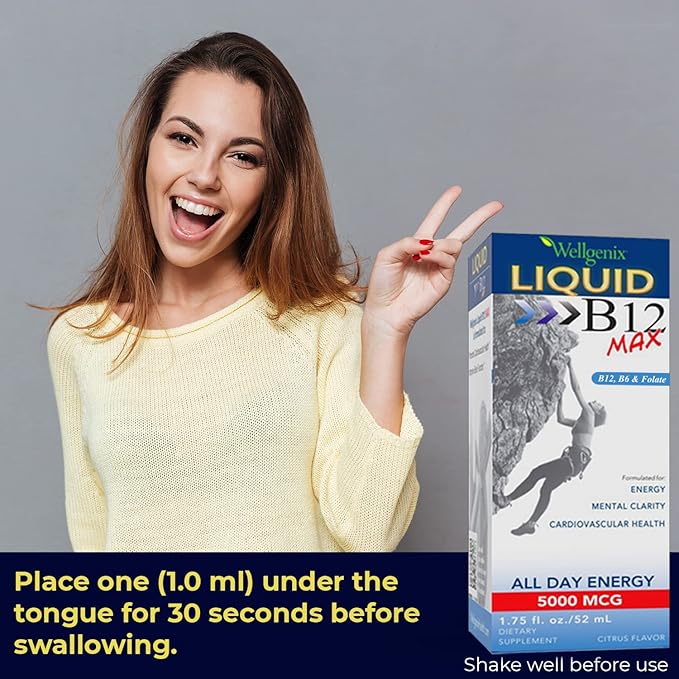 Wellgenix B12 Max Liquid - Vitamin B6, B12 & Folate-High Absorption - Cardiovascular Health, Mental Clarity, Energy Boost & Weight Loss - 1.75oz, 2 Pack