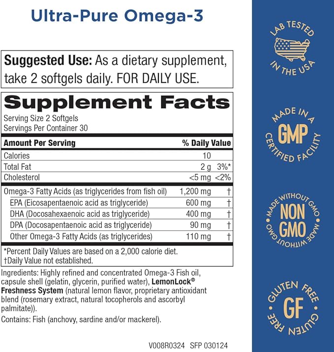 - ULTRA-PURE OMEGA-3 - Utilizes DHA and EPA – in addition to the up-and-coming DPA – for advanced support throughout your body. The fatty acids provide scientifically backed support for your heart and circulatory system, brain function, and more.*