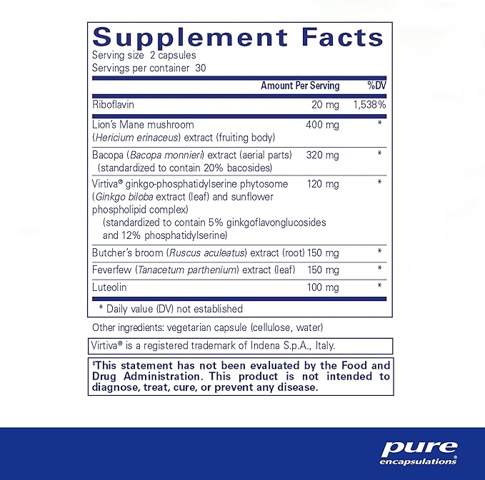 - Unique Formula: Includes Riboflavin and ginkgo-phosphatidylserine sunflower phytosome complex for enhanced absorption and bioavailability.*