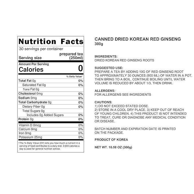 - Ingredient: 6 Years Red Ginseng 100% (Origin Korea, 34 roots)