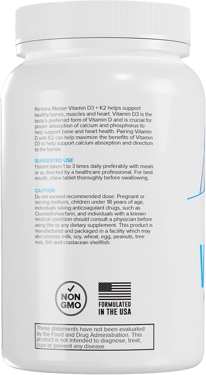 Vitamin D-3 50mcg 2000 IU + K-2 75mcg 90ct Chewable Tablets
