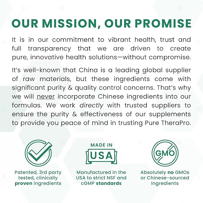 - πππππ ππ: Pure TheraPro Rx was founded in Denver Colorado to formulate and manufacture the highest quality supplements available on the market today. Purity is our priority, which is why we insist on using patented, clinically studied ingredients, and never utilizing fillers, flow agents, excipients, or ingredients sourced from China. We also never use dairy, gluten, corn, soy, or other common allergens in any of our class-leading, practitioner-recommended formulas.