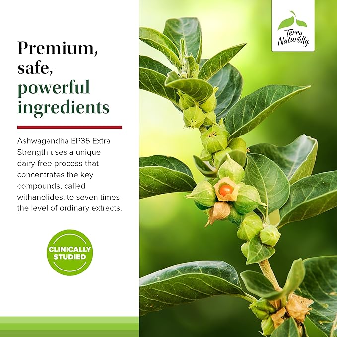 Terry Naturally Ashwagandha EP35 Extra Strength - Herbal Supplement for Sleep Support - Aid Healthy Stress Response - Endurance & Energy Support - 60 Capsules (60 Servings)