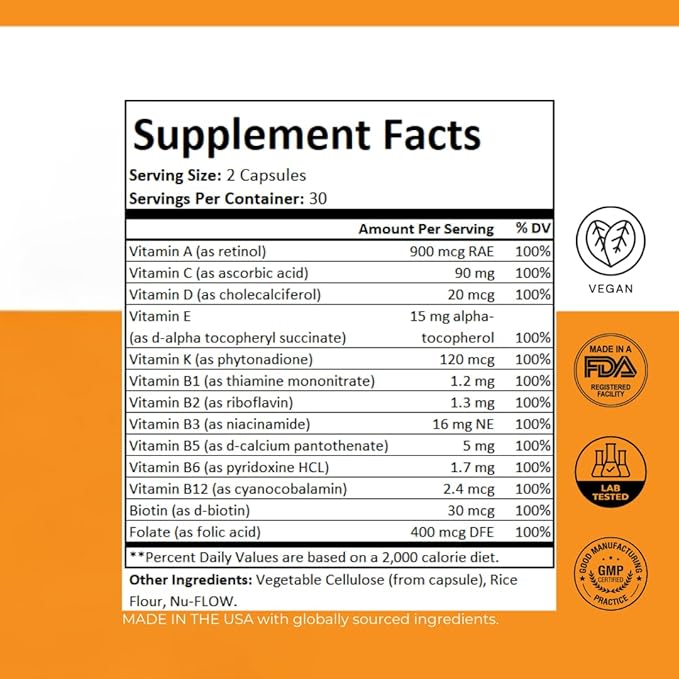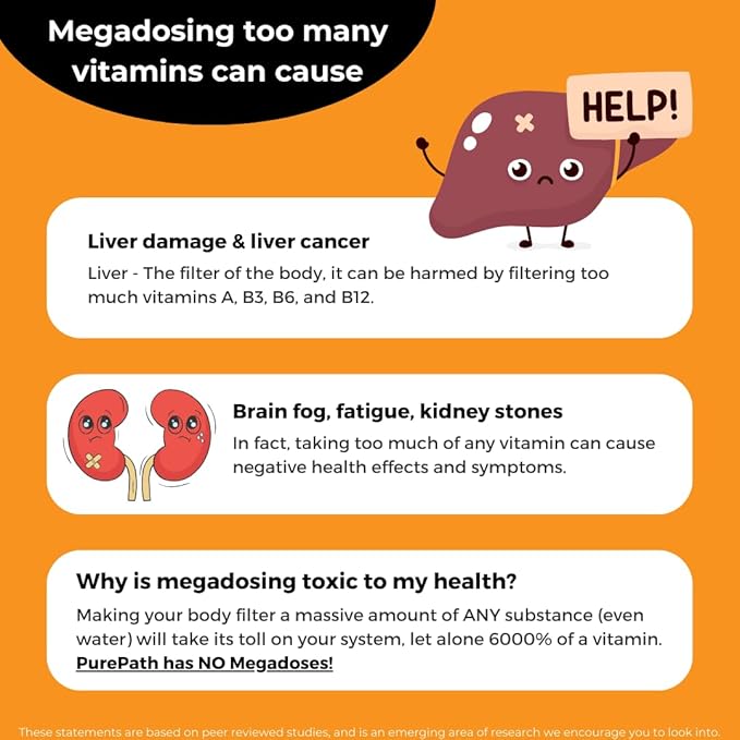 PurePath Non-Toxic Adult Multivitamin - 13 Vitamins - 100% RDA - No Harmful Megadoses - with B6 & B12 - Supplement for Optimal Energy, Focus, and Longevity - 60 Capsules - 30 Day Supply