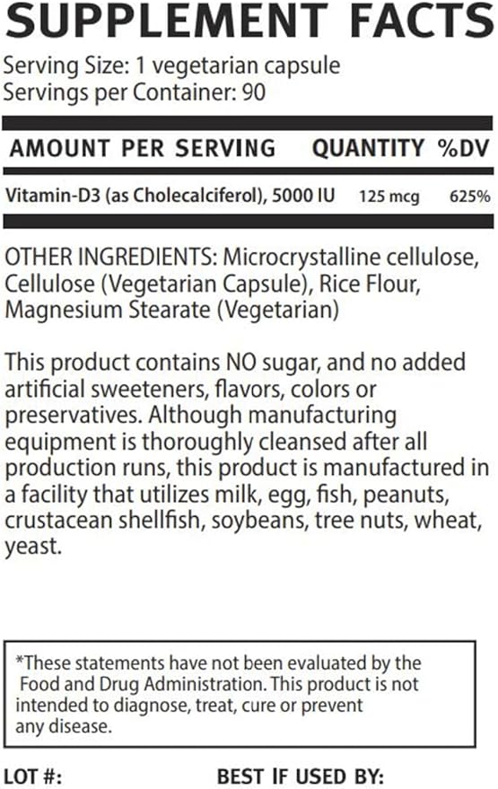 - HIGH QUALITY: Our Vitamin D3 capsules are independently checked for the best safety and quality. Each capsule is free of unnecessary and unwanted fillers. Capsules are designed for smooth and easy consumption.