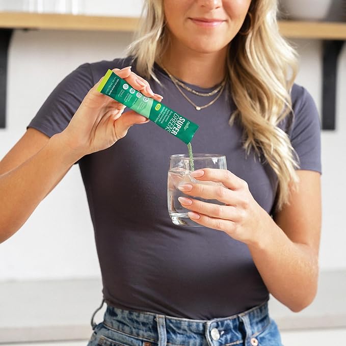 Supergreens Premium Superfood Greens Drink Mix w/Chlorella, Moringa, Spinach & Broccoli + Digestive Enzymes & Probiotic Blend -Nutrient-Packed Powder Wellness (Apple Pear, 20 SRV, Travel Pack)