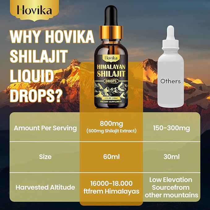 - Premium Ingredients - With the gold grade ingrentients, Hovika Himalayan Shilajit Liquid Drops are manufactured in accordance with highest standards. The pure natural shilajit supplement is soy free, non-GMO, gluten-free and vegan-friendly. If you are not satisfied with our products for any reason, please feel free to contact us.*