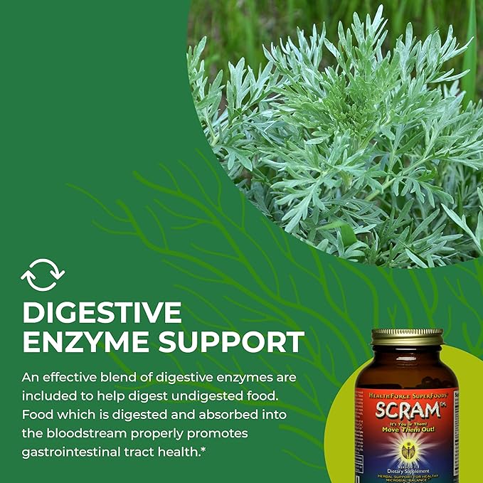 HealthForce SuperFoods Scram - Herbal Supplement with Milk Thistle, Wormwood & Black Walnut - Digestion Support Capsules - 150 Vegan Capsules