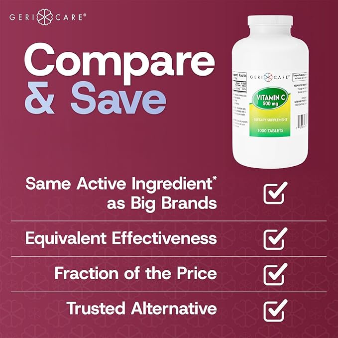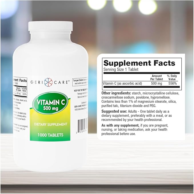 GeriCare Vitamin C 500 mg, Antioxidant, Immune System Support, Nutritional Supplement Tablets, 1000 Count (Pack of 1)