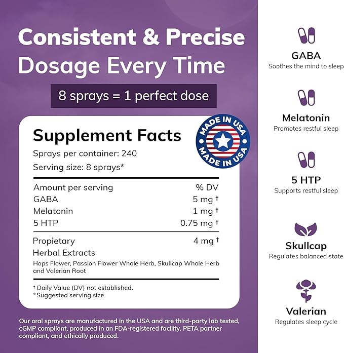 - 😴Fast-Acting Natural Sleep Support for Better Sleep and Rest; Used by Professional Athletes and Consumers across the Country; Easy to adjust dosage with this Innovative Vitamin Spray. Made in USA 🇺🇸